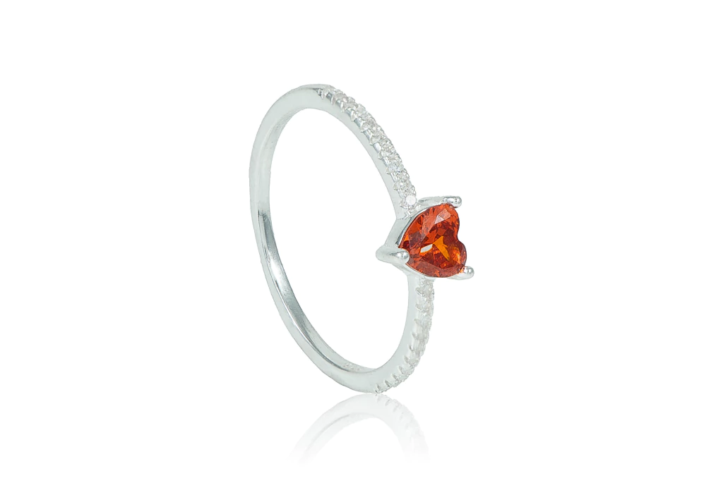 Este anel coração vermelho com meia aliança é uma peça romântica e sofisticada. Confeccionado em prata 925, possui um delicado cristal em formato de coração na cor vermelha, simbolizando amor e paixão. A meia aliança cravejada com zircônias complementa o design, adicionando brilho e elegância. Disponível em diversas numerações, é uma excelente opção para revenda, encantando clientes que buscam uma joia especial e marcante.