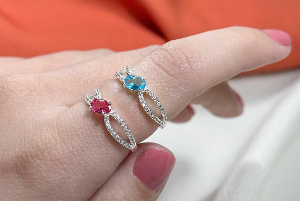 ANEL 2 AROS ZIRCÔNIA CRISTAL PINK