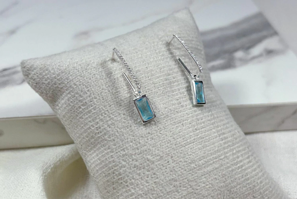 BRINCO ZIRCÔNIA RETÂNGULO AZUL 6X29 MM