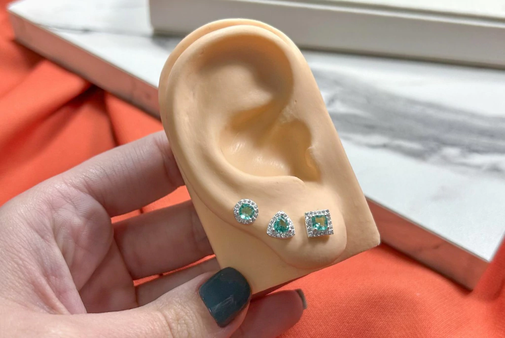 BRINCO TRIO FORMAS ZIRCÔNIA VERDE CLARO