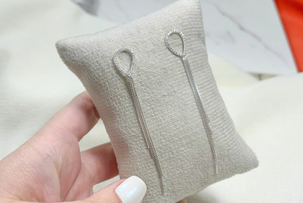 BRINCO GOTA ZIRCÔNIA C/ CORRENTES 10X70 MM