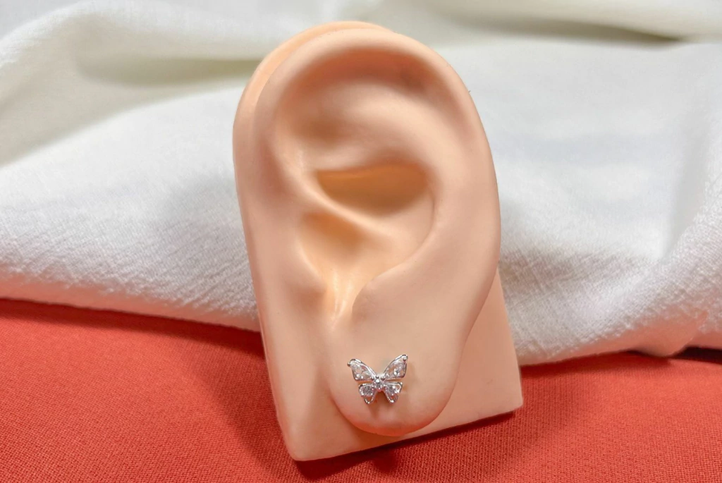 Delicado e feminino, o brinco borboleta com zircônia em prata 925 traz brilho suave e charme ao visual, perfeito para clientes que adoram peças românticas e cheias de leveza.