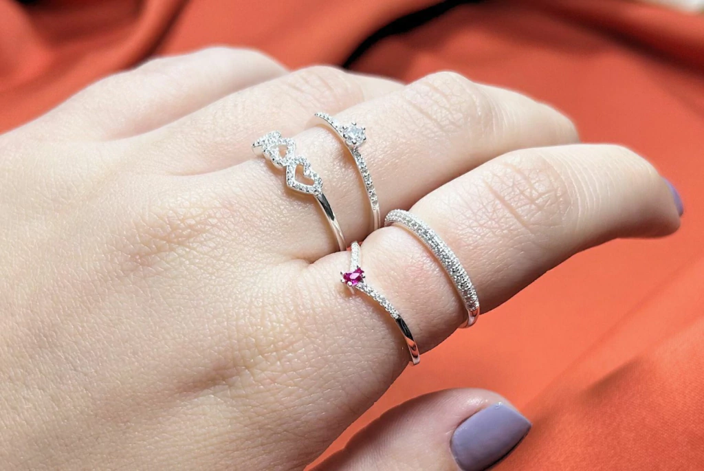 ANEL CRISTAL LILÁS METADE ZIRCÔNIA