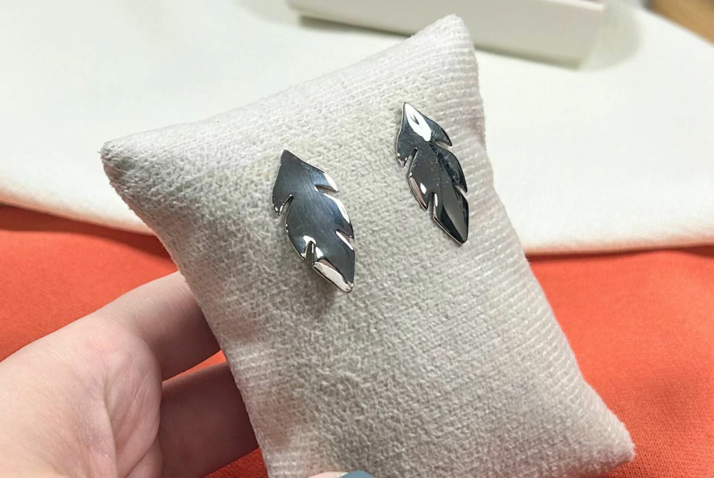 Brinco em prata 925 com design de folha lisa, trazendo simplicidade e elegância em uma peça delicada e versátil. Ideal para uso diário e perfeita para revenda.