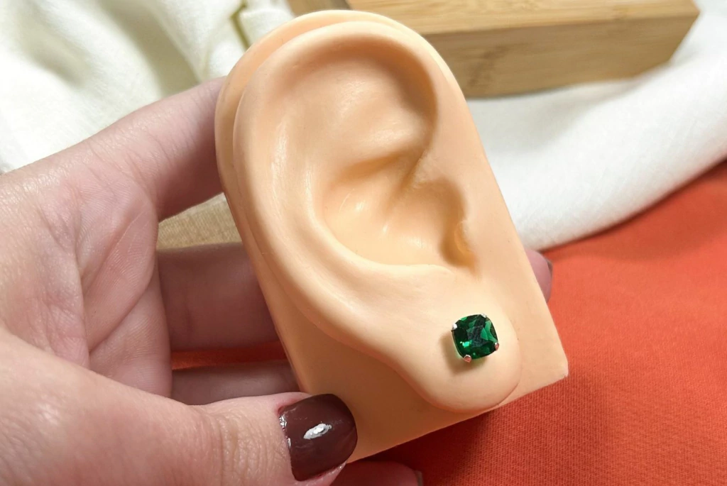 BRINCO ZIRCÔNIA QUADRADA VERDE 7X7 MM
