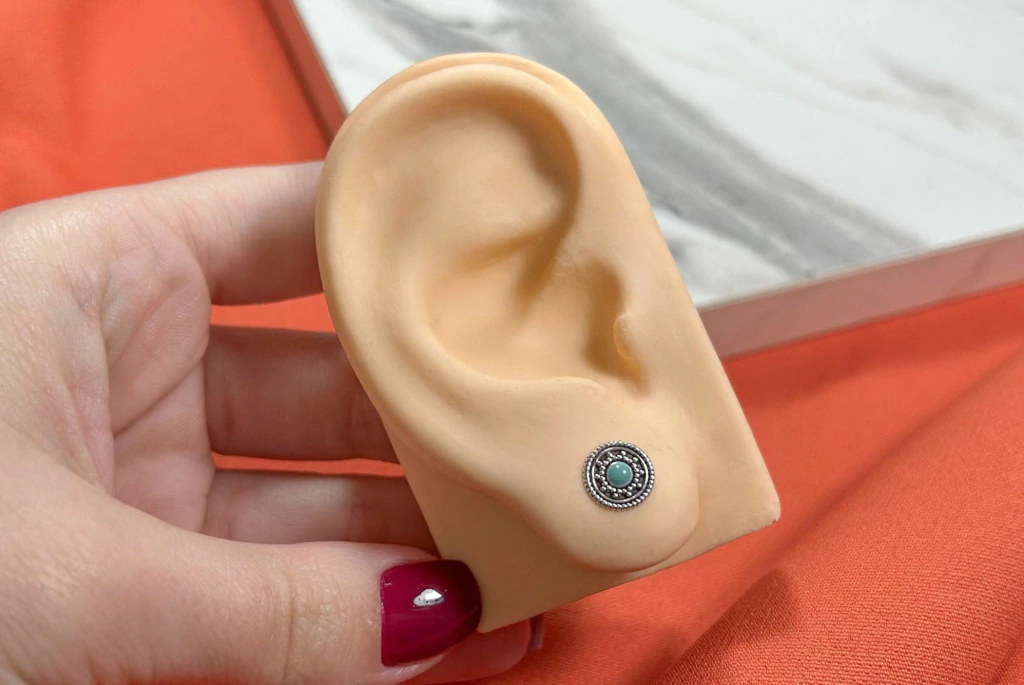 BRINCO REDONDO PEDRA TURQUESA VERDE 8 MM
