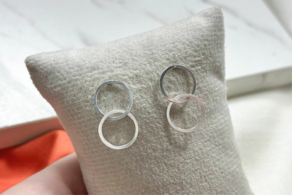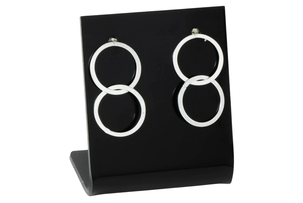 Brinco em prata 925 com design de círculos, elegante e versátil, perfeito para quem busca um visual moderno e sofisticado. Uma peça clássica que combina com diferentes estilos e também ideal para revenda.