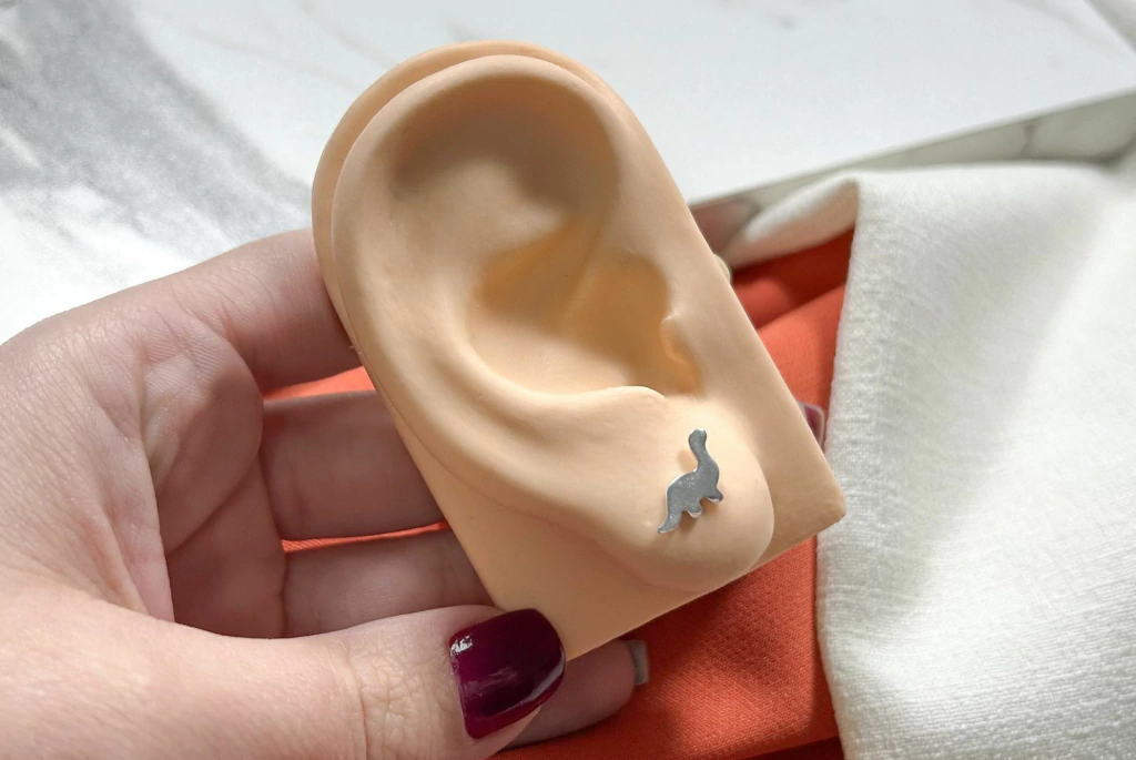 Brinco em prata 925 no formato de dinossauro, trazendo um toque divertido e original ao visual. Perfeito para quem gosta de joias criativas e também ideal para revenda.