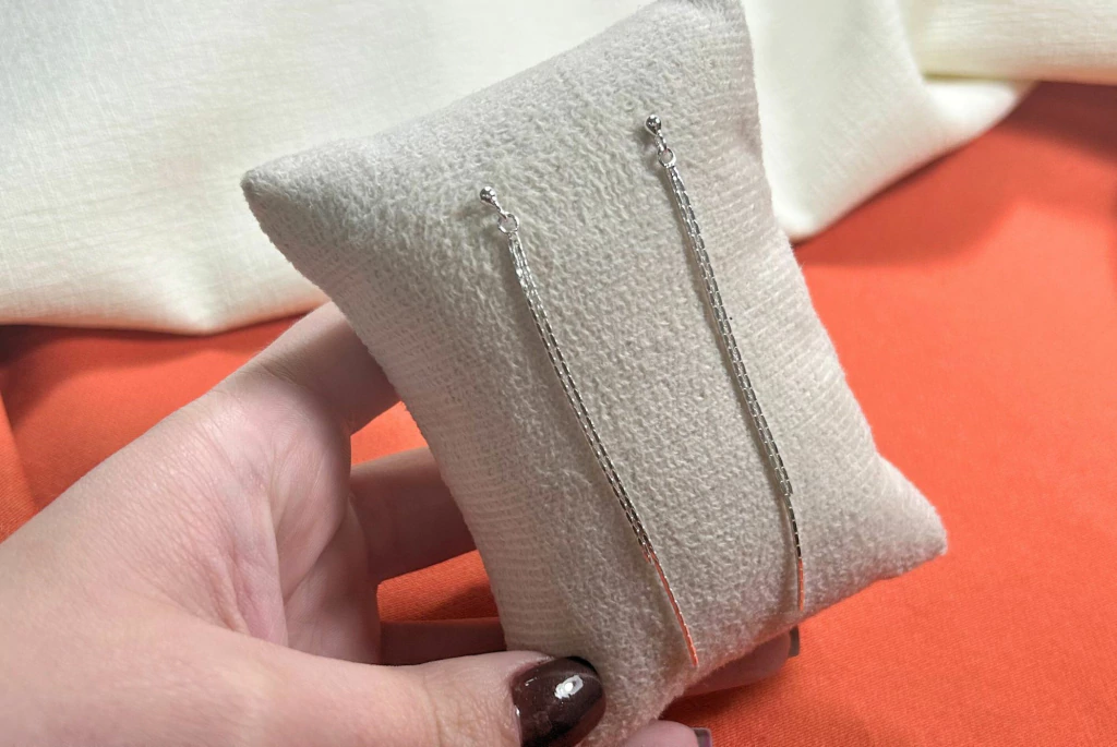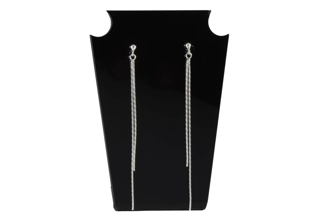 Brinco em prata 925 com duas correntes delicadas, criando um visual moderno e sofisticado. Leve e versátil, é perfeito para complementar diferentes looks e também ideal para revenda.