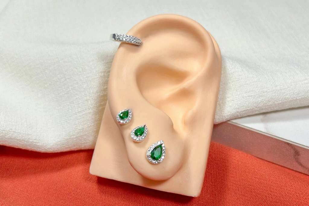 BRINCO TRIO GOTA ZIRCÔNIA VERDE