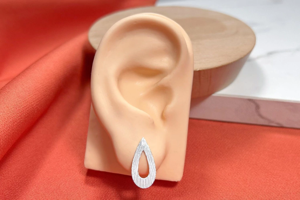 Brinco em prata 925 no formato de gota escovada, com textura fosca e acabamento elegante que traz um toque moderno e sofisticado ao visual. Um modelo atemporal, ideal para quem busca estilo e leveza — perfeito para revenda.