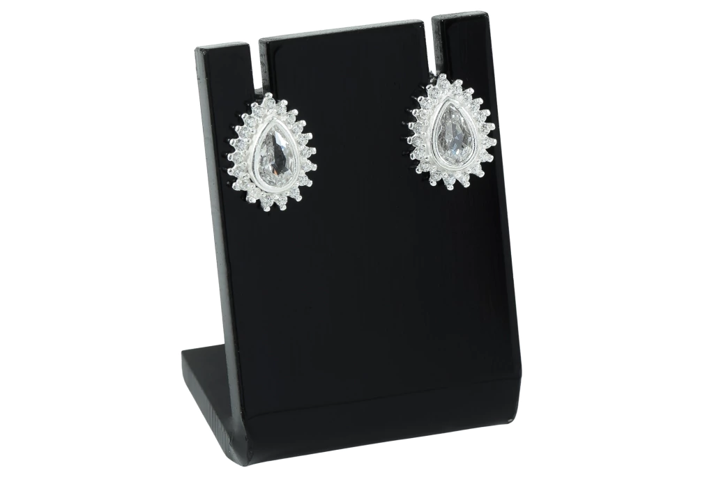 Brinco em prata 925 com zircônia em formato de gota e borda delicada, que combina brilho e elegância para destacar qualquer look. Excelente escolha para revenda.