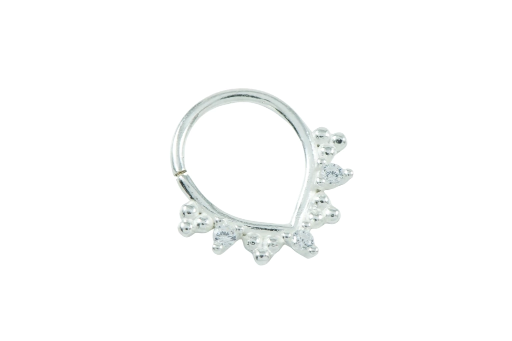 Brinco piercing septo com bolinhas e zircônias, moderno e delicado, perfeito para complementar looks estilosos e uma excelente opção para revenda. Confeccionado em prata 925.