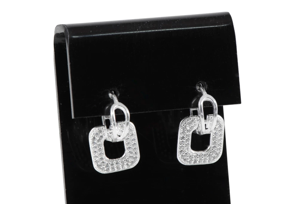 Brinco Argola com pingente Quadrado Zircônia em prata 925, moderno e sofisticado. O design quadrado com zircônias ilumina o visual, trazendo elegância e versatilidade, perfeito para encantar clientes e ideal para revenda.