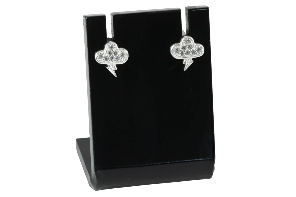 Brinco nuvem de chuva com zircônias em prata 925, unindo delicadeza e charme em um design lúdico que remete a gotas brilhantes. Ideal para quem gosta de peças criativas e delicadas, sendo também excelente opção para revenda.