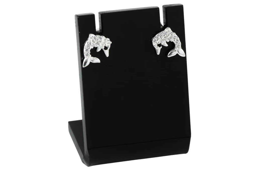 Brinco em formato de golfinho com detalhes em zircônias, confeccionado em prata 925, trazendo um toque delicado e divertido para o dia a dia. Ideal para quem gosta de joias com design criativo e perfeito para revenda.