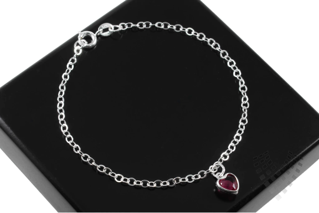 Pulseira em prata 925 com pingente de coração em cristal pink. Mede 18 cm e é delicada, versátil e ideal para revenda.