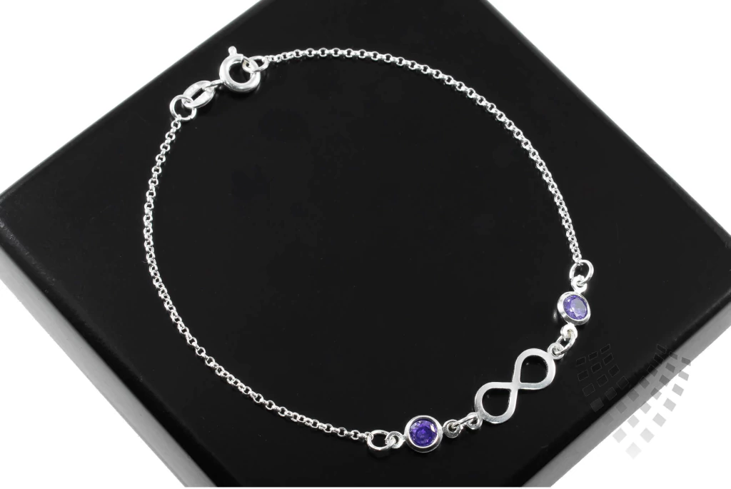 Pulseira em prata 925 com símbolo do infinito e dois cristais vermelhos. Mede 18 cm, sendo delicada, moderna e perfeita para revenda.
