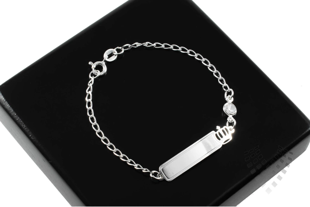 Delicada e charmosa, essa pulseira infantil em prata 925 possui uma plaquinha central com detalhe de coroa e zircônia, trazendo um toque especial e encantador à peça. Ideal para presentear e perfeita para revenda, é um item com excelente saída e acabamento refinado. Tamanho: 14 cm.