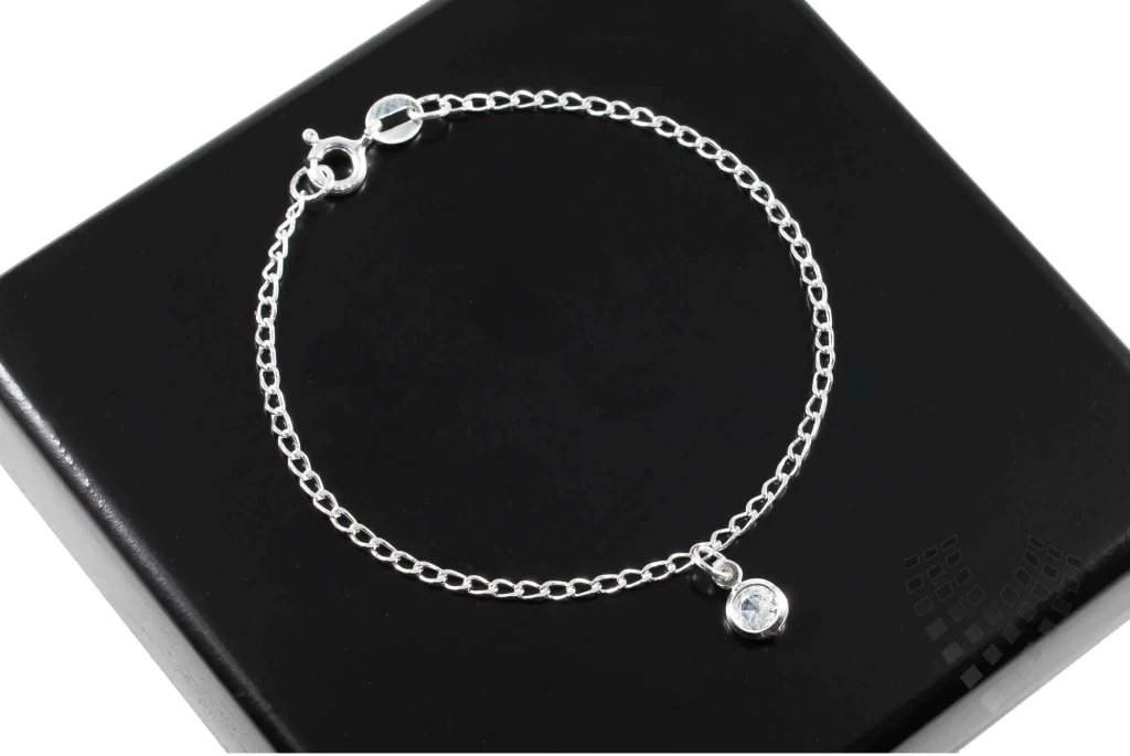 Pulseira infantil em prata 925 com pingente delicado de zircônia, trazendo brilho sutil e charme especial para as pequenas. Uma joia graciosa, perfeita para presentear e encantar em qualquer ocasião. Medida: 14 cm.