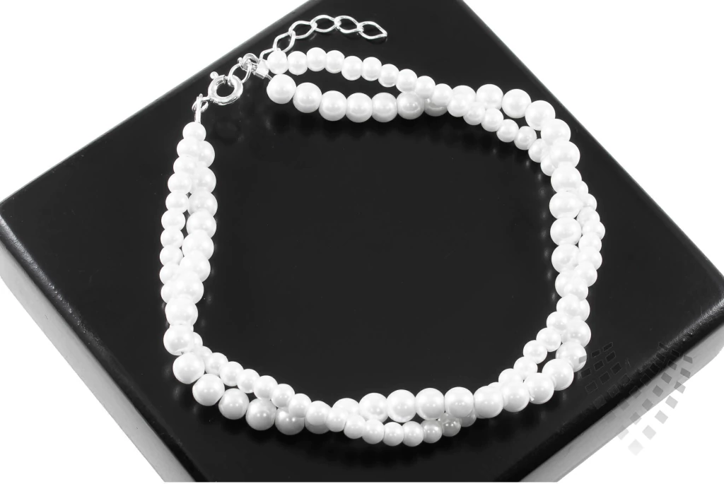 Pulseira em prata 925 com duas voltas de pérolas delicadas de 3 e 4 mm, que criam um visual clássico e atemporal. Ideal para quem aprecia elegância e sofisticação em cada detalhe. Medida: 18 cm com extensor de 3 cm.