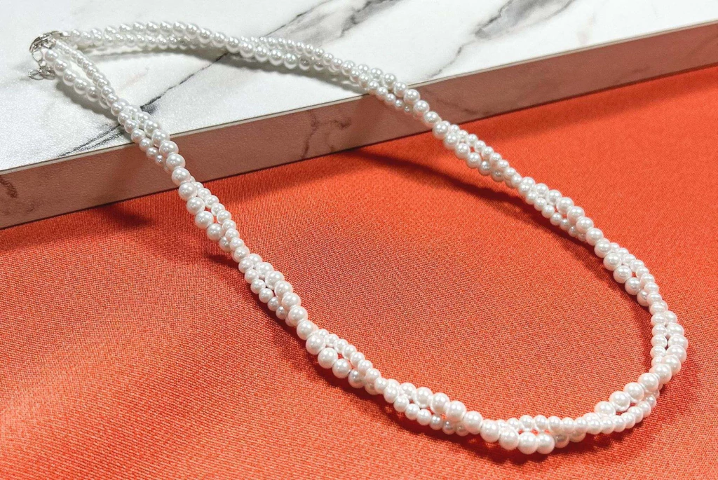 Colar em prata 925 com duas voltas de pérolas delicadas de 3 e 4 mm, que trazem um toque clássico e refinado ao visual. Uma joia versátil e charmosa, perfeita para diversas ocasiões. Medida: 40 cm com extensor de 3 cm.