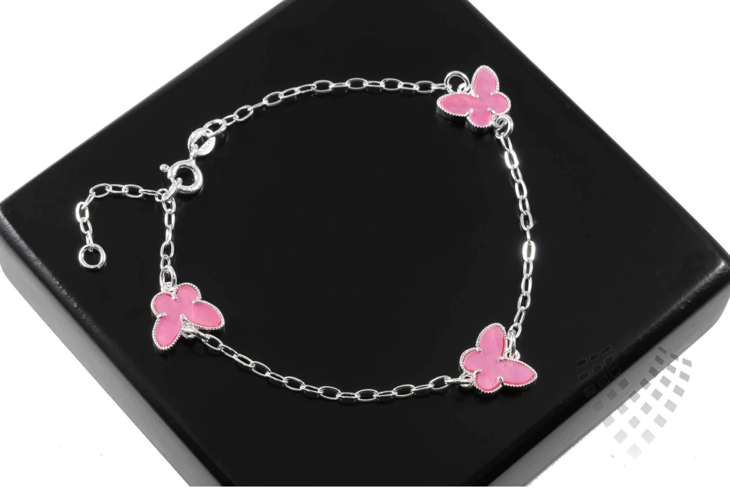 Delicada e encantadora, a pulseira com 3 borboletas rosa combina charme e suavidade em um design apaixonante. Com 18 cm + 2 cm de extensor, se ajusta com conforto ao pulso. Uma peça ideal para valorizar seu mix de joias ou oferecer como opção graciosa para revenda.