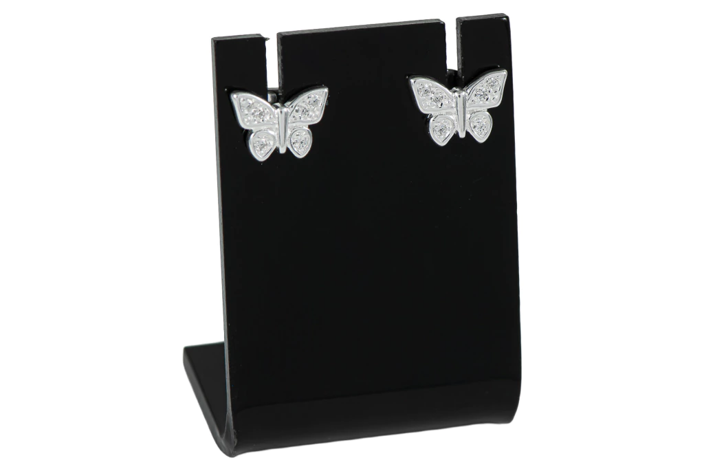Brinco em prata 925 com design de mini borboleta cravejado com zircônias, trazendo um toque delicado e cheio de brilho para o visual. Um modelo encantador, perfeito para o dia a dia e excelente opção para revenda.