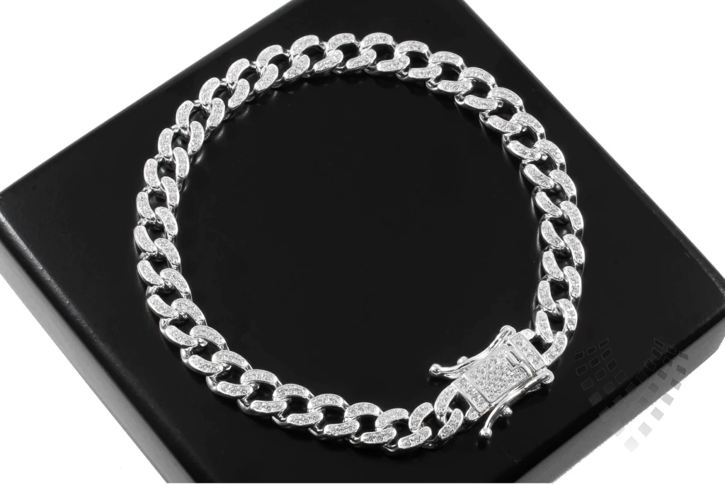 Pulseira em prata 925 com elos grumet cravejados de zircônias, que combinam brilho e estilo em uma joia moderna e imponente. Ideal para quem gosta de acessórios marcantes e sofisticados — perfeita para valorizar qualquer mix e ótima opção para revenda.