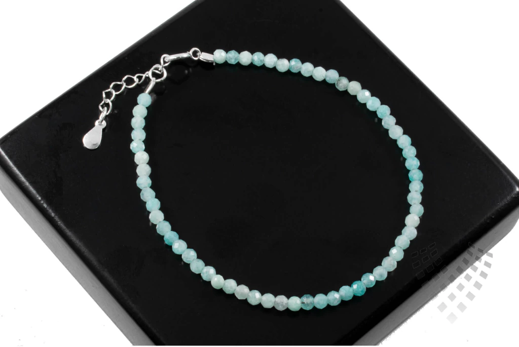 Pulseira em prata 925 com pedras naturais de aquamarine, que trazem um toque de cor e energia positiva ao visual. Com 18 cm de comprimento e extensor de 3 cm, é uma joia elegante e versátil, perfeita para o dia a dia e excelente opção para revenda.