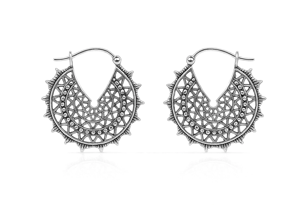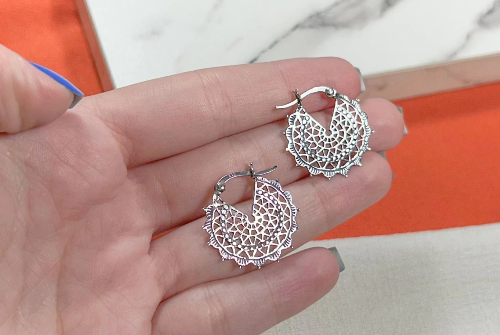 Brinco argola em prata 925 com acabamento trabalhado e envelhecido, que destaca detalhes únicos e um estilo artesanal cheio de personalidade. Uma joia versátil e charmosa, perfeita para quem aprecia peças com toque rústico e excelente opção para revenda.