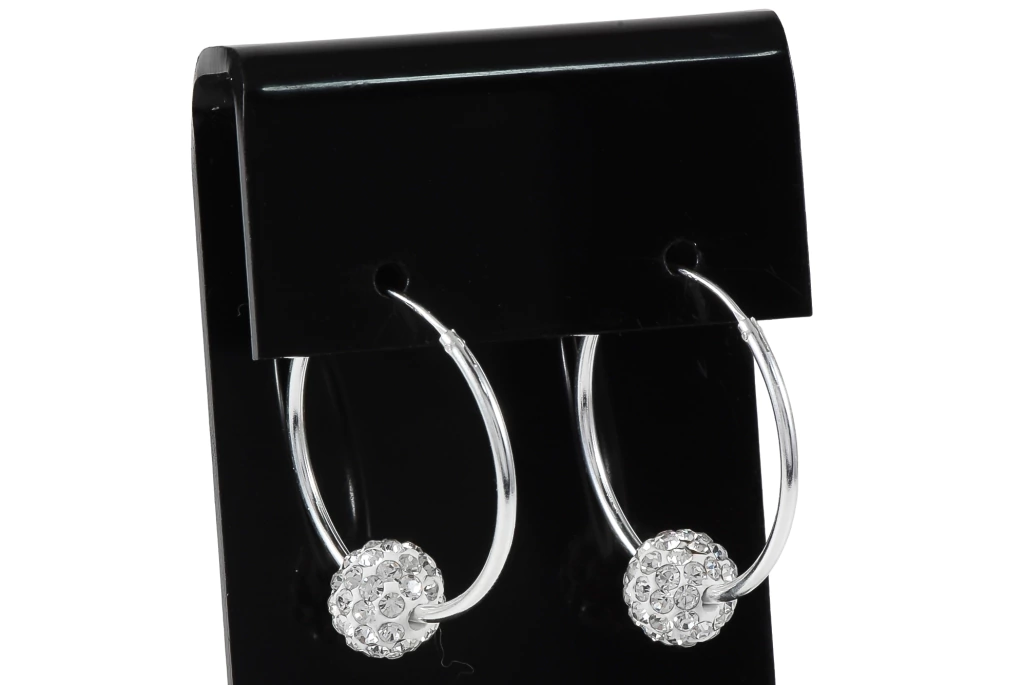 Brinco argola em prata 925 com bola de cristais estilo Mina, que reflete brilho e alegria em cada movimento. Uma joia vibrante e moderna, ideal para dar um toque de cor ao visual e perfeita para revenda.