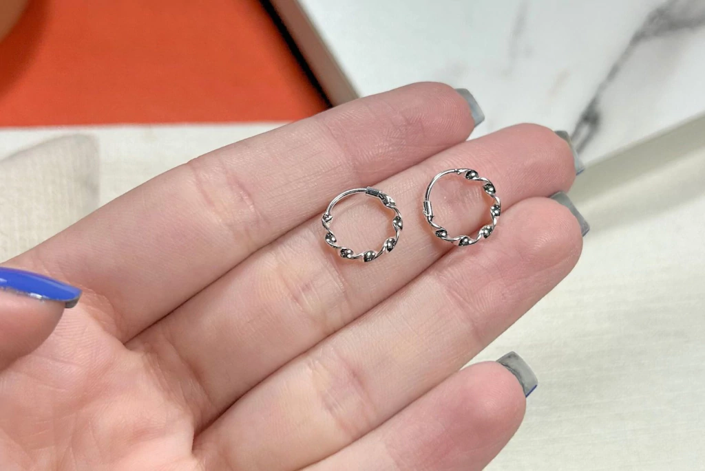 Brinco argola em prata 925 com design torcido, que une brilho e movimento em um estilo moderno e atemporal. Uma joia versátil e elegante, ideal para compor diferentes produções e excelente opção para revenda.