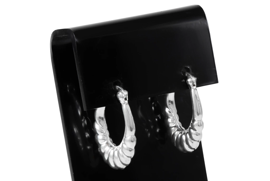 Brinco argola oval em prata 925 com design croissant, que combina curvas suaves e acabamento polido para um visual elegante e moderno. Uma peça versátil, perfeita para complementar diferentes looks e ótima opção para revenda.