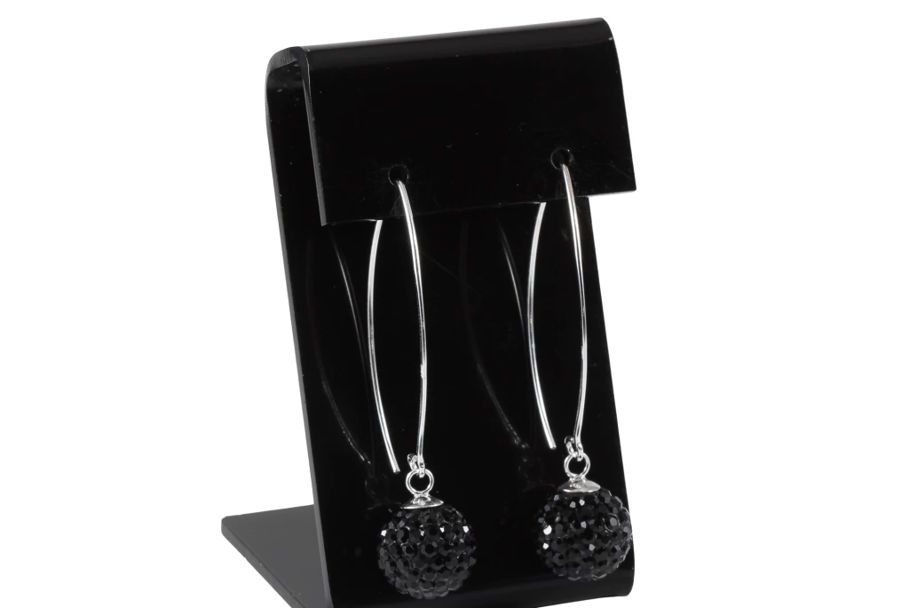 Brinco anzol em prata 925 com bola de cristais preto estilo Mina, que reflete brilho e alegria em cada detalhe. Uma joia cheia de vida, ideal para quem ama um toque vibrante no visual e excelente opção para revenda.