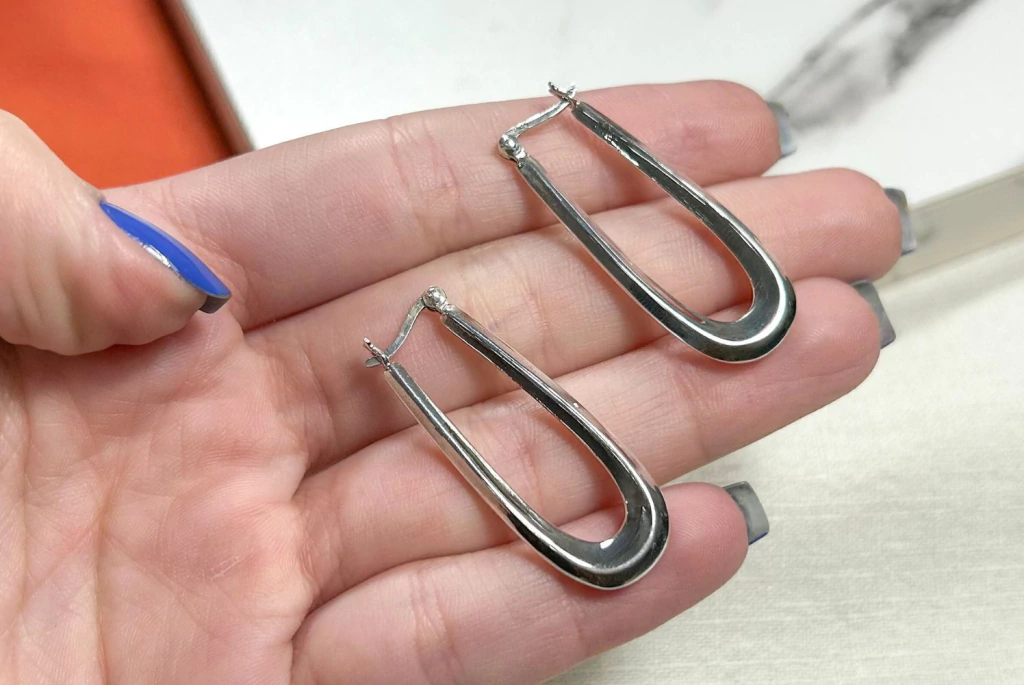Brinco argola oval longo em prata 925, que combina elegância e sofisticação em um design moderno e alongado. Uma peça versátil, ideal para valorizar qualquer look e excelente opção para revenda.