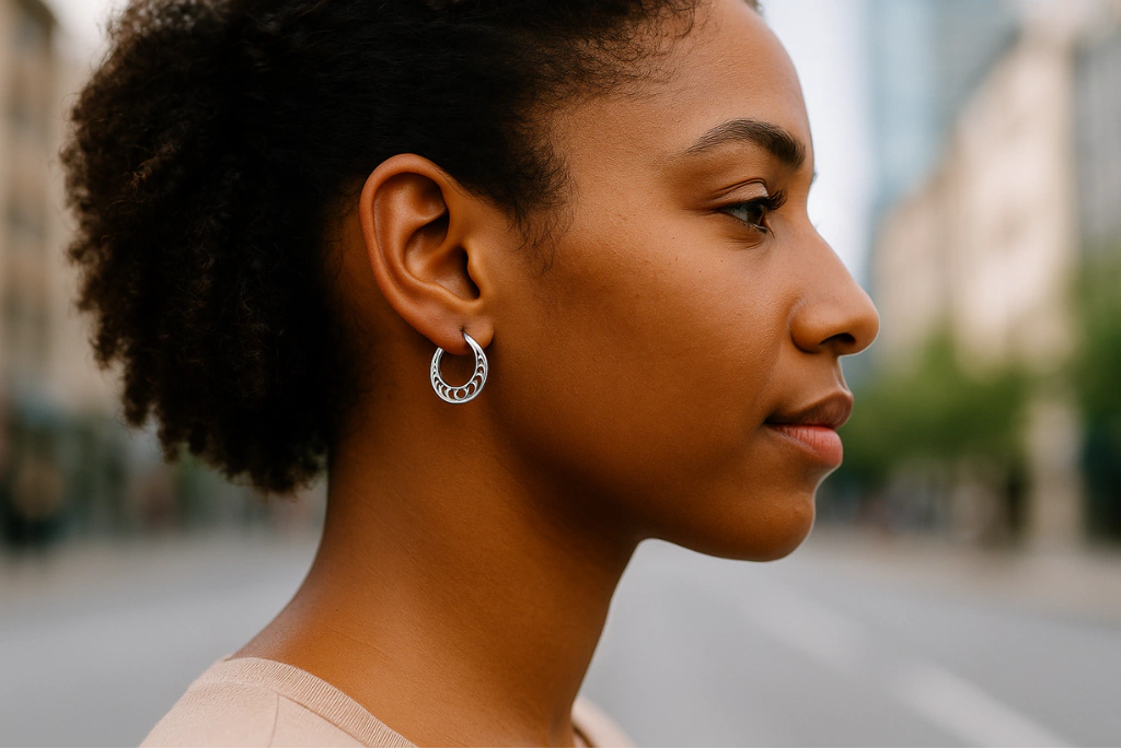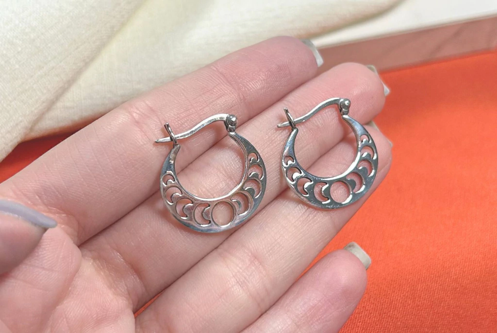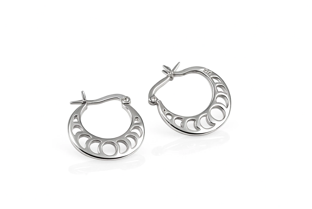 Brinco argola em prata 925 com design inspirado nas fases da lua, que une delicadeza e modernidade em uma peça cheia de estilo. Uma joia versátil, perfeita para complementar looks elegantes ou casuais e ótima opção para revenda.