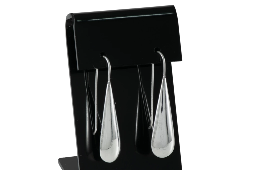 Brinco em prata 925 com design de gota pendente e fecho tipo gancho, que confere um caimento elegante e delicado à peça. Um modelo atemporal, perfeito para compor produções sofisticadas e uma excelente escolha para revenda.