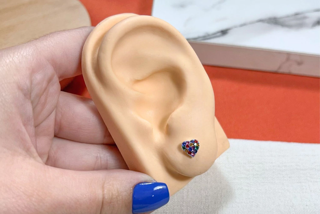 Brinco em prata 925 com coração de cristais coloridos, que reflete brilho e alegria em cada detalhe. Um modelo encantador, perfeito para quem ama um toque de cor e ideal para revenda.