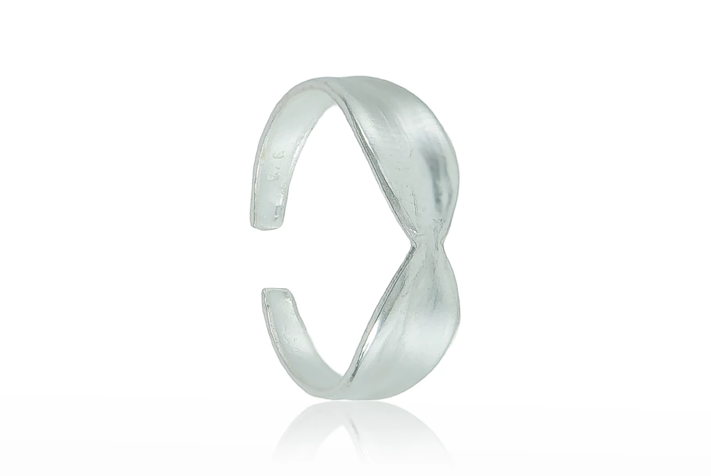 Anel de falange em prata 925 com frente torcida, que combina delicadeza e estilo em um design moderno. Ideal para complementar o mix de anéis e excelente opção para revenda.