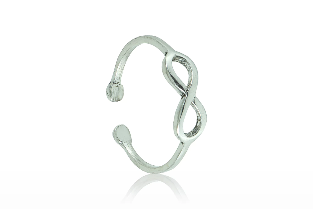 Anel de falange em prata 925 com símbolo do infinito na parte frontal, representando conexão e eternidade em um design delicado. Uma joia atemporal, perfeita para o dia a dia e excelente opção para revenda.