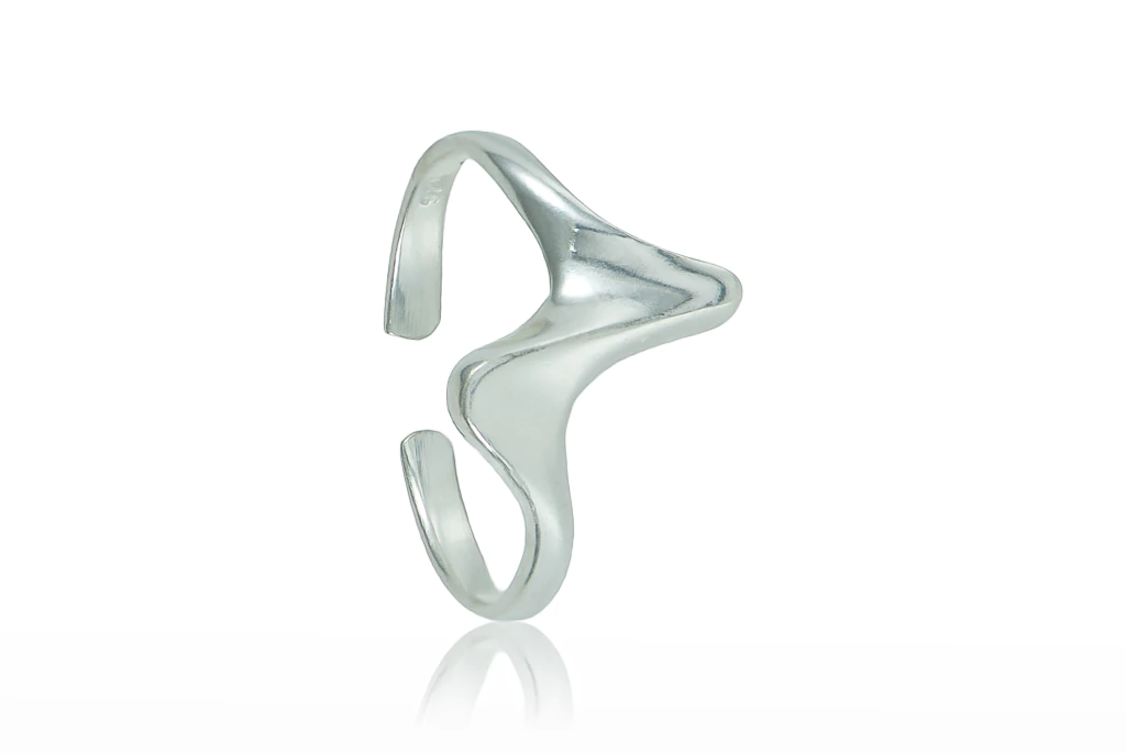 Anel de falange em prata 925 com design liso e formato ondulado, que adiciona um toque moderno e delicado ao visual. Uma peça versátil, perfeita para combinar com outros anéis e excelente opção para revenda.