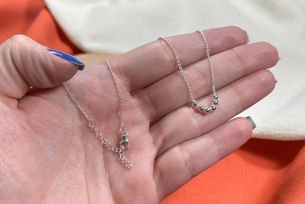 Colar em prata 925 com 6 bolinhas de 3 mm, um modelo delicado e moderno que complementa qualquer look com sutileza. Possui 40 cm de comprimento + extensor de 3 cm, ideal para usar sozinho ou em mix de colares. Excelente opção para revenda e para quem busca elegância minimalista.