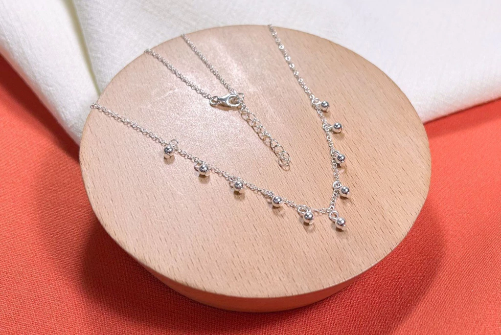 Colar em prata 925 com bolinhas penduradas, que adicionam movimento e brilho sutil ao visual. Um modelo versátil e delicado, perfeito para o dia a dia ou para compor mix de colares. Possui 40 cm de comprimento + 3 cm de extensor, garantindo caimento elegante e confortável. Excelente opção para revenda e para quem aprecia joias modernas e femininas.