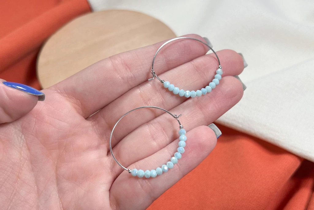 Brinco argola em prata 925 com cristais azuis, que adicionam brilho e sofisticação ao visual. Um modelo elegante e versátil, perfeito para o dia a dia ou ocasiões especiais, sendo excelente opção para revenda.