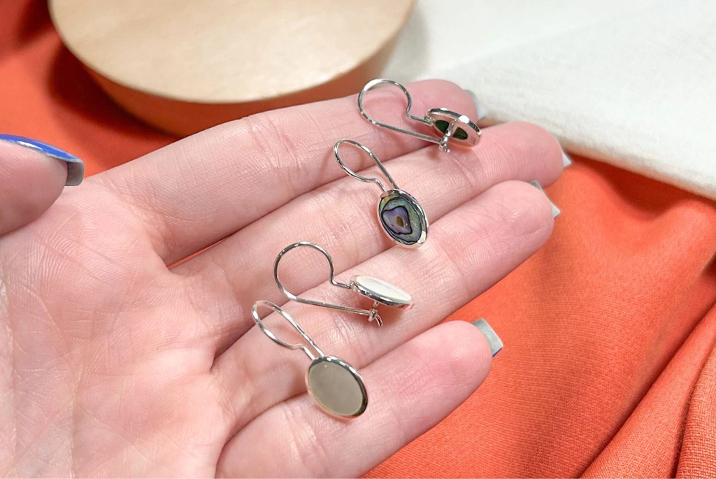 Brinco gancho em prata 925 com Abalone oval, que adiciona cores iridescentes e elegância ao visual. Um modelo delicado e sofisticado, ideal para ocasiões especiais ou uso diário, sendo excelente opção para revenda.
