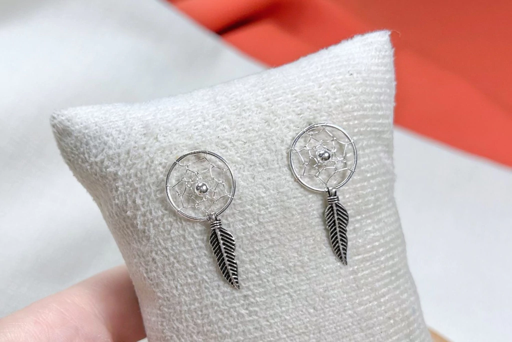 Brinco em prata 925 com design de filtro dos sonhos, símbolo de proteção e boas energias. Seu acabamento delicado e o trabalho detalhado tornam a peça encantadora e cheia de significado, ideal para quem valoriza joias com estilo e propósito — perfeita também para revenda.