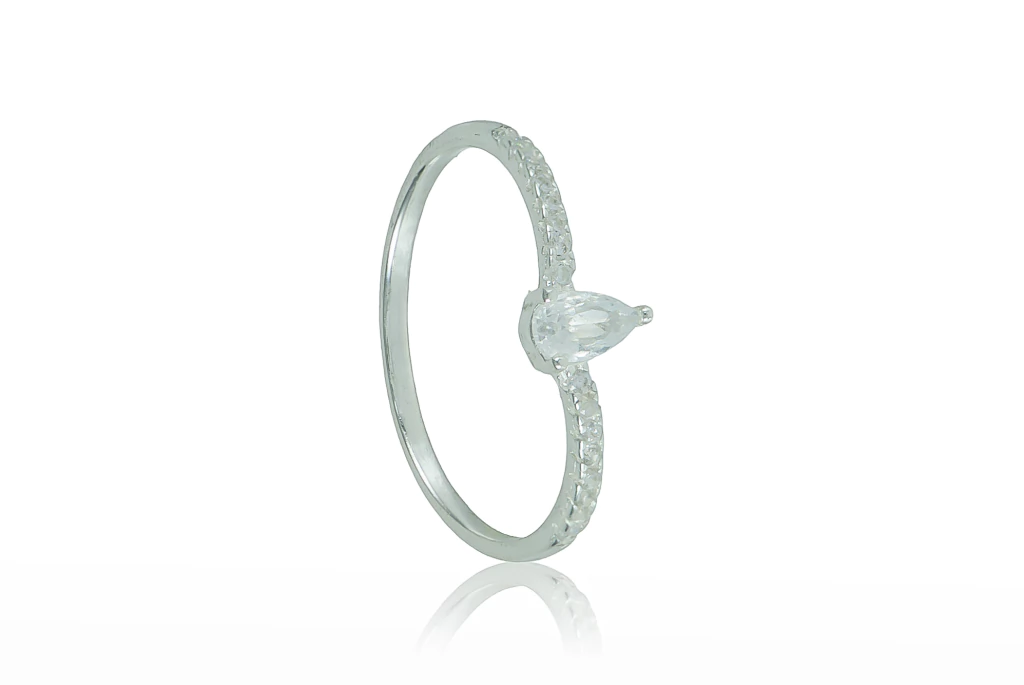 Anel em prata 925 com delicada gota de zircônia, emoldurada por pequenas zircônias que realçam ainda mais o brilho da peça. Um modelo elegante, perfeito para valorizar qualquer composição e ideal para revenda. Disponível em diversos tamanhos.