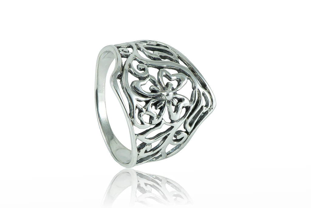 Anel em prata 925 com flor adornada por detalhes delicados, trazendo um visual romântico e elegante. Uma peça charmosa, perfeita para revenda. Disponível em diversos tamanhos.