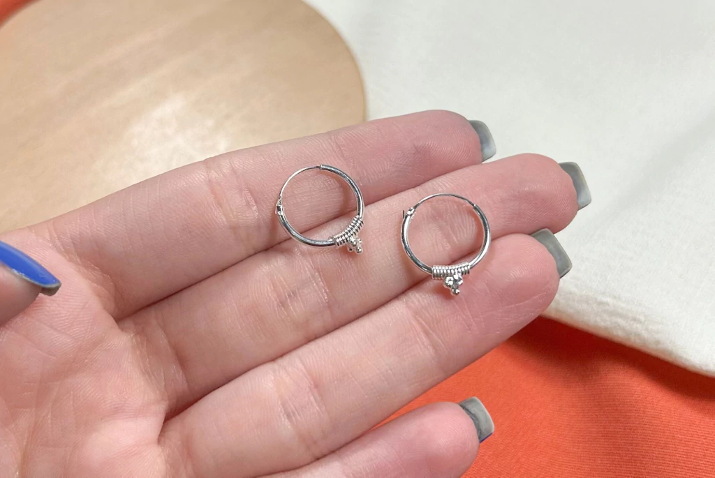 Brinco argola em prata 925 com armação trabalhada e bolinhas, moderno e versátil, ideal para trazer estilo ao look e excelente para revenda.